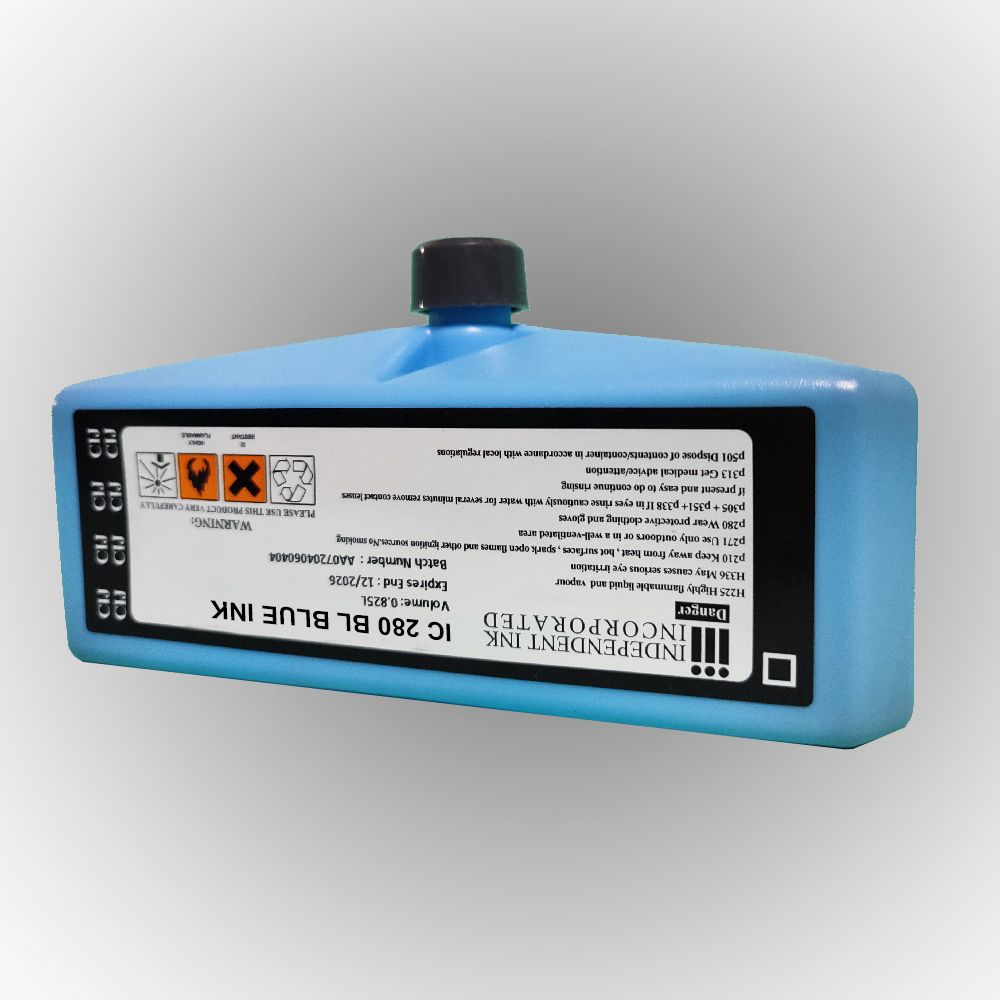 جوهر دومینو IC 280 BL BLUE INK با رنگ آبی پررنگ و واضح، برای چاپ اطلاعاتی که نیاز به وضوح و تمایز بیشتر دارند، بسیار کاربردی است. استفاده از این جوهر باعث میشود نوشتهها و علائم روی بستهبندی بهخوبی متمایز شوند.این جوهر مناسب انواع جت پرینتر صنعتی دومینو می باشد.